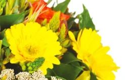 Détail du bouquet: Bouquet longue tige automnal. Composé de gerbera (ou germini), santini, célosie, fleurette et diverse feuillage. Le tout maintenu par un lien de raphia naturel. Ce bouquet est réalisé par un artisan fleuriste local. (Fleurs variables selon les saisons et la disponibilité en magasin tout en gardant l’esprit, la forme et les couleurs). (Ref Florale : 1303 – Rome). Visuel non contractuel – Visuel correspondant à la formule Meilleur Compromis.