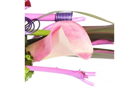 Cette très jolie composition florale rose et violine dans les tons pastel a été imaginée par votre artisan fleuriste avec la plus grande attention. Les 3 bois flottés de couleurs roses (ou violine selon votre préférence) donnent un air aérien à cette superbe création que l’on prénomme « Chrysalide ». Quelques petites touches de jaune (ou de vert selon la disponibilité de votre fleuriste) apportées par les demi-citrons et la cordyline rehaussent les couleurs des fleurs, tout en conservant une douce harmonie. Les lys Callas également appelés Arum des fleuristes sont parfaitement assortis aux 3 fleurons d‘Orchidée Papillon (Phalaenopsis roses). Leur disposition en piquée parallèle dans une mousse synthétique nous rappelle les ailes gracieuses du papillon s’échappant de sa chrysalide.