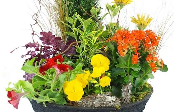 Détail de l’assemblage : Assemblage de plantes vertes et fleuries dans les tons chauds. Cette création réalisée par un artisans fleuriste local est composée d’un kalanchoé, conifère, pétunia, primevère, diverse plante verte et fleurie. De la mousse est ajoutée à la base des plantes et des écorces de bois sont déposées pour une décoration naturelle Le tout assemblé dans un contenant noir. (Fleurs et contenant variables selon la disponibilité en magasin tout en gardant l’esprit, la forme et les couleurs)(Ref Florale : 9370 – Helianthus). Visuel non contractuel – Visuel correspondant à la formule Meilleur Compromis – Non compatible avec une crémation.